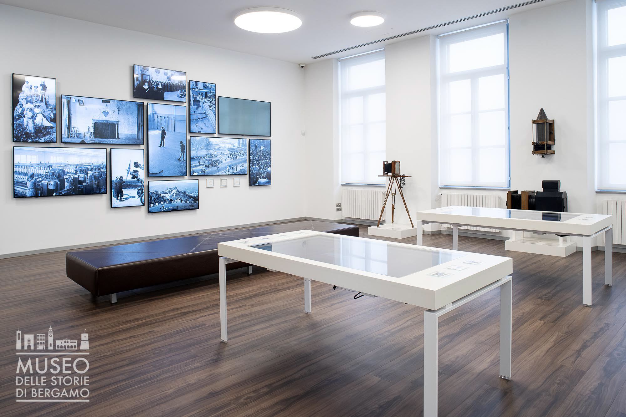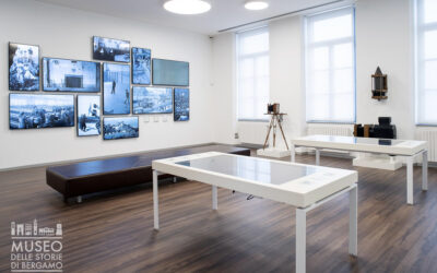Suggestive installazioni multimediali ripropongono le tecniche di lavorazione delle fotografie dalla prima metà dell’Ottocento alla seconda del Novecento, ricostruiscono la diffusione degli studi fotografici nella bergamasca e illustrano i fondi dell’Archivio fotografico Sestini.