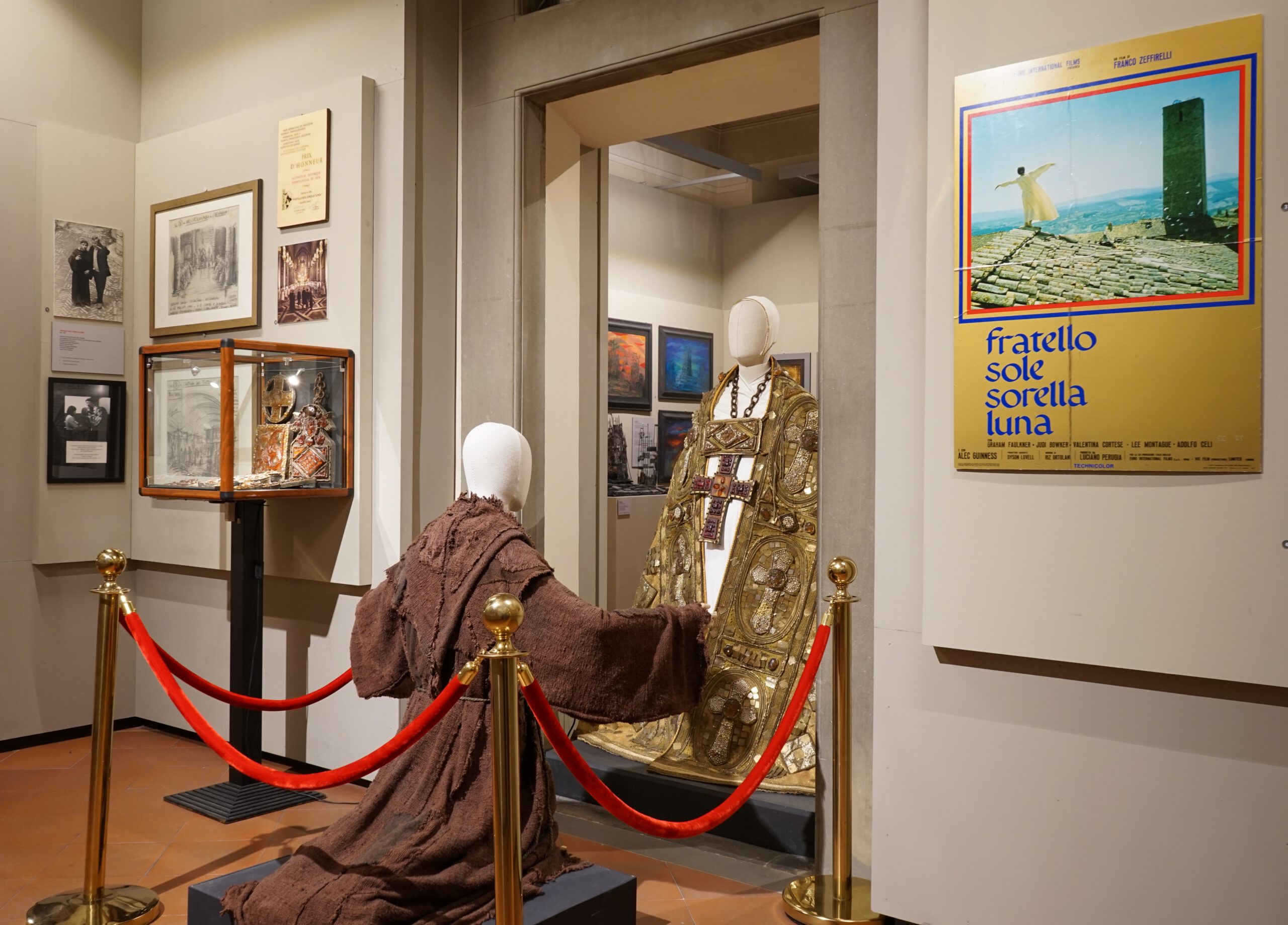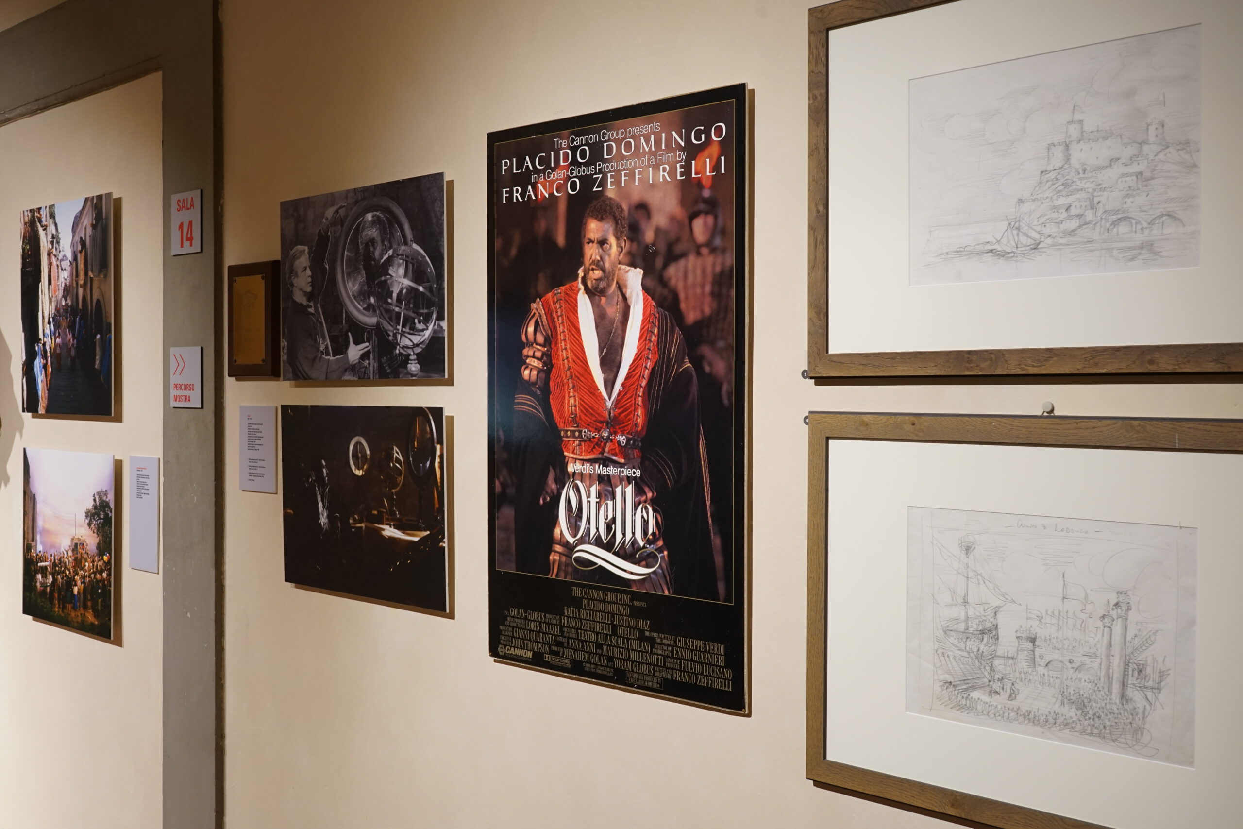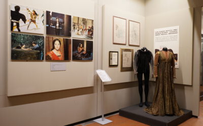 Al Museo vero e proprio si accede percorrendo un’ampia galleria dove si è accolti e accompagnati da numerosissime celebrities che hanno collaborato con Zeffirelli: da Anna Magnani a Giancarlo Giannini, da Maria Callas a Luciano Pavarotti, da Monica Vitti a Laurence Olivier, da Judy Dench a Herbert von Karajan, da Monica Bellucci a Tom Cruise. Il Museo Zeffirelli ospita oltre 250 opere del Maestro Zeffirelli tra bozzetti di scena, disegni, figurini, che insieme a fotografie, video, modellini e costumi rievocano decine di film e di spettacoli teatrali. Nel percorso museale, l’attività teatrale e cinematografica di Zeffirelli viene ripercorsa in modo intrecciato. Delle 22 Sale espositive sono dedicate al cinema la 1, 6, 7, 14, 15, 16, 17, 18, 22. Più in dettaglio, nella Sala 1 si ricordano i tre film che hanno visto Zeffirelli compiere il suo apprendistato cinematografico come aiuto regista di Luchino Visconti; nella Sala 6 un video di 30 minuti propone una carrellata sulla carriera di Zeffirelli, ripercorsa attraverso citazioni degli allestimenti teatrali più acclamati e soprattutto clip tratte dai suoi film; la Sala 7 è riservata alla rievocazione di Per Firenze, il documentario che Zeffirelli realizzò nel 1966, per raccontare al mondo i tragici giorni dell’alluvione che devastò Firenze. Nella Sala 15 si trova la grande Sala Inferno, dedicata al progetto incompiuto di un adattamento cinematografico del poema di Dante. Vi sono esposti gli studi di Zeffirelli, preparatori alla creazione di immagini per l’ambientazione del viaggio dantesco, e la loro elaborazione multimediale. Le altre Sale illustrano i film opera, i film romanzo, i film spirituali, i film autobiografici e i film Shakespeariani. Nelle foto di scena dei vari film, una carrellata di stelle: Placido Domingo, Teresa Stratas, Vanessa Redgrave, William Hurt, Charlotte Gainsburg, Alec Guinness, Valentina Cortese, Robert Powell, Cher, Maggie Smith, Fanny Ardant, Jeremy Irons, Mel Gibson, Glenn Close, Alan Bates, Helena Bonham-Carter, Olivia Hussey, Leonard Whiting, Elizabeth Taylor, Richard Burton. La visita al Museo si conclude con il ricordo di Piero Tosi, costumista eccelso, che con Zeffirelli ha condiviso gli anni della formazione, le prime esperienze lavorative, un’opera e due film: La traviata e Storia di una capinera. In ciascuna Sala i visitatori possono fruire anche di una esperienza in Realtà Aumentata, attivata individualmente tramite un’app mobile: attraverso questa visione di materiali conservati in Archivio e non accessibili al pubblico è quindi possibile approfondire anche alcuni aspetti dei film Romeo e Giulietta, Fratello sole sorella luna, Un tè con Mussolini. Il Museo ospita anche la fedele ricostruzione dello Studio di Zeffirelli. La sua personalità esuberante e affettuosa traspare dalla miriade di oggetti che lo popolano: i ritratti di famiglia, le opere degli artisti Lila de Nobili e Piero Tosi, legati a Zeffirelli da profonda amicizia, i primi paesaggi dipinti da lui stesso in età scolastica, le fotografie con dedica di amici e collaboratori, le statuette di ceramica, i libri, i fiori. (Fonte: https://www.fondazionefrancozeffirelli.com/fondazione/museo-zeffirelli/)