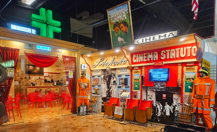 Il 1° luglio 2017 Michele Guerra – fondatore negli anni ‘80 di Euroambiente, azienda incentrata sulla sicurezza e salute nei luoghi di lavoro – inaugura la Cittadella della Sicurezza e della Formazione, che ospita al suo interno la sede centrale di Euroambiente e il Museo Storico dei Pompieri e della Croce Rossa Italiana. Se in un primo momento, il Museo aveva come scopo principale quello didattico e veniva utilizzato per istruire le figure della prevenzione incendi e del soccorso presenti obbligatoriamente in tutte le aziende, oggi è un importante luogo di memoria che racconta la storia di questi due gloriosi Corpi. (Fonte: https://museostoricopompieri.it/pages/storia) Il museo contiene oltre 3000 pezzi – perfettamente conservati – che raccontano come un tempo funzionava il servizio di soccorso in caso d’incendio: dalla chiamata fino al rientro. Si contano, altresì, vari oggetti legati al patrimonio cinematografico italiano: oltre a manifesti di film legati al corpo dei pompieri, sono esposte le insegne di quattro cinema storici della città di Manfredonia (il Fulgor, l’Impero, il Vittoria e il Cinema Pesante) ed è presente una ricostruzione della facciata del Cinema Statuto di Torino, che nel 1983 fu colpito da un incendio che causò la morte di 64 persone e portò a un cambiamento epocale nella normativa italiana in materia di sicurezza contro gli incendi nei locali pubblici e, in particolare, nei cinematografi. La ricostruzione presenta le insegne del cinema e vari manifesti del film “La capra”, proiettato proprio in quel tragico 13 febbraio 1983 in cui si consumò l’incendio.