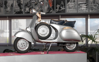 Il museo espone un’ampia collezione di fotografie in bianco e nero di dive e divi del cinema degli anni ‘50 e ‘60, ritratti a bordo di una Vespa, spesso sul set.