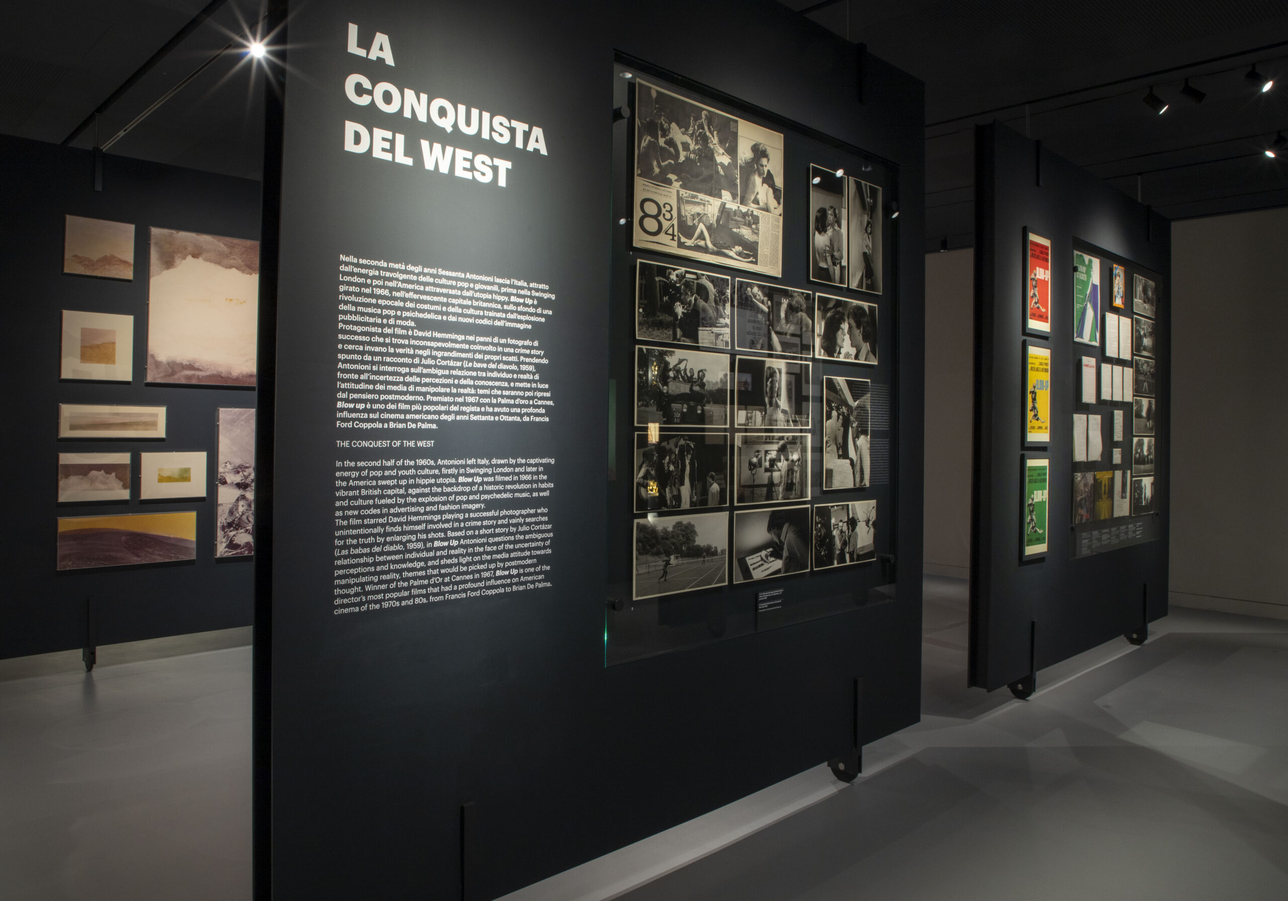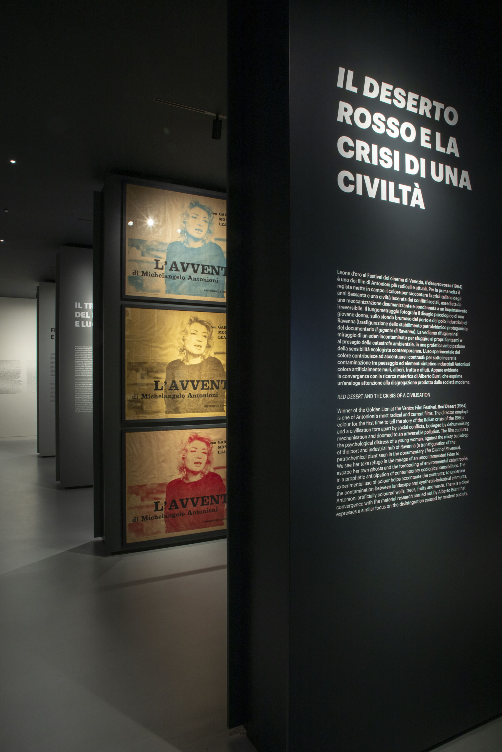 A Spazio Antonioni è attualmente esposta una parte dell’Archivio Antonioni, acquisito dal Comune di Ferrara nel 1997 per volontà dello stesso Michelangelo Antonioni e della moglie Enrica Fico, che conserva oltre 47.000 unità. Dopo una prima presentazione provvisoria dei materiali dell’archivio nel Museo Antonioni – istituito nel 1995 a Ferrara, in Corso Ercole I d’Este 17, e chiuso nel 2006 – nel 2024 ha inaugurato il nuovo e permanente Spazio Antonioni negli ambienti completamente ridisegnati del Padiglione d’Arte Contemporanea pertinente al complesso di Palazzo Massari. L’attuale percorso museale, articolato su due piani, si sviluppa in modo cronologico, attraversando tutti le fasi della carriera del regista ferrarese e illustrando per ognuna di esse le influenze letterarie e artistiche che hanno caratterizzato lo sviluppo dell’estetica antonioniana. Al primo piano sono esposte anche alcune delle “Montagne incantate”, i famosi paesaggi dipinti da Antonioni, e uno spazio è dedicato alle mostre temporanee. Il museo, ideato da Dominique Païni in sinergia con Enrica Fico Antonioni, si offre come un luogo di scoperta e di studio dell’opera di uno dei più grandi cineasti del Novecento. Per accompagnare il visitatore in questo viaggio, lo studio d’architettura Alvisi Kirimoto ha progettato un itinerario fluido e dinamico, scandito da volumi nitidi ed essenziali, che si ispira alle atmosfere rarefatte di Antonioni e si dipana in un racconto cronologico attraverso le stagioni del suo cinema. (Fonte: https://www.museiferrara.it/spazio-antonioni/)