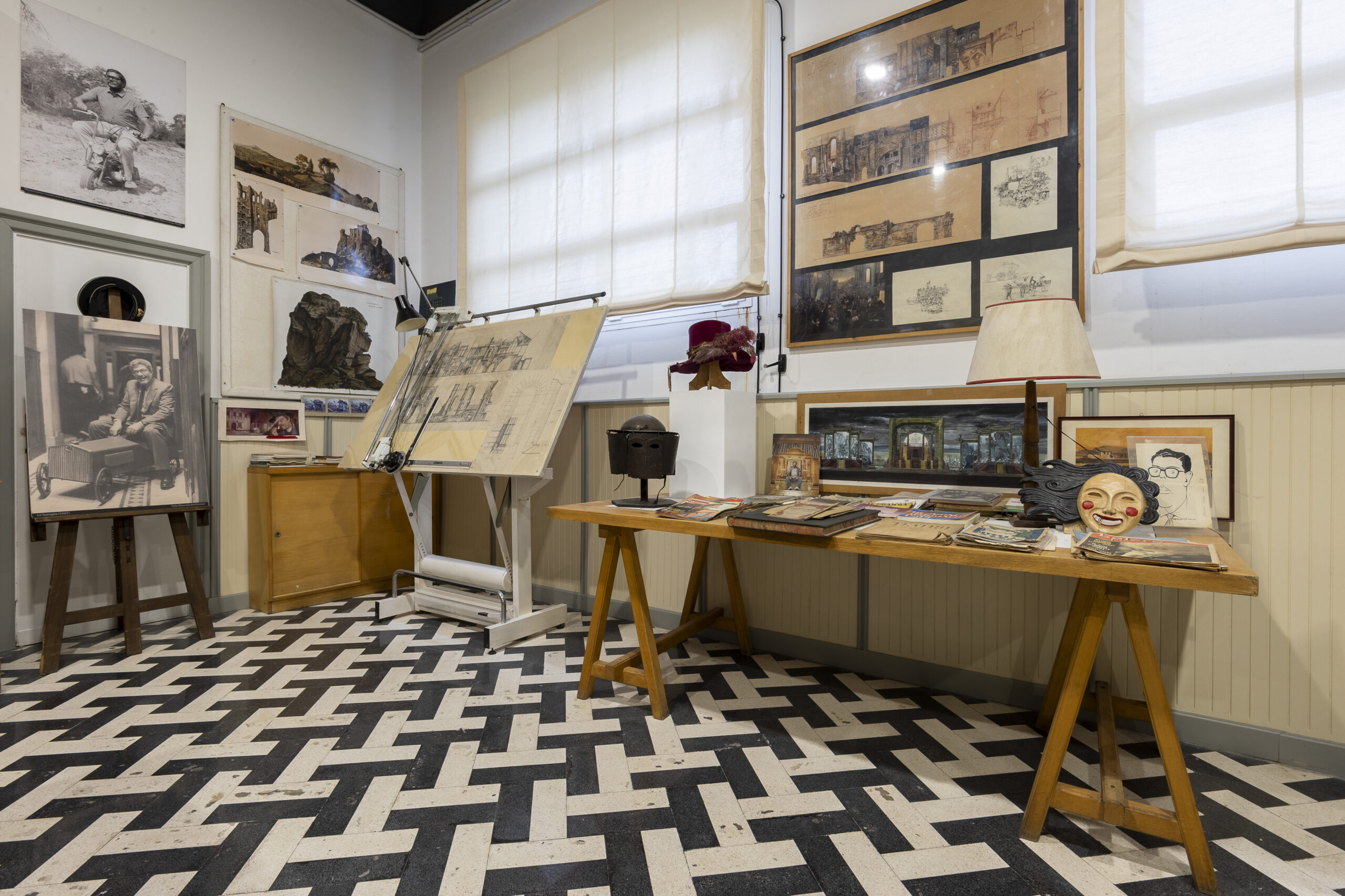 Il nome dello studio EL indica le iniziali dei nomi dei suoi fondatori: la E di Ettore (Scola) e la L per Luciano (Ricceri). Uno studio nato negli anni Ottanta a Cinecittà dalla collaborazione di due cineasti, il grande regista Ettore Scola, che per oltre 50 anni (esordio alla regia nel 1964 con il film ad episodi “Se permette parliamo di donne”, scritto con Maccari), ha ritratto gli italiani e la storia sociale del paese, e Luciano Ricceri, scenografo tra i più grandi, che ha lavorato nella sua lunga carriera per il cinema, la televisione e il teatro. Uno studio che testimonia il loro lungo sodalizio che ha inizio fin dal 1966 con “L’arcidiavolo” e che li ha portati a lavorare insieme in film indimenticabili tra cui, “C’eravamo tanto amati” (1974), “Brutti, sporchi e cattivi” (1976), “Una giornata particolare” (1977), “La terrazza” (1980), “La famiglia” (1987), “Il viaggio di Capitan Fracassa” (1990), “La cena” (1998), “Concorrenza sleale” (2001), fino a “Che strano chiamarsi Federico” (2013), che Scola dedica al suo grande amico Federico Fellini, girato nel Teatro 5 di Cinecittà, proprio per il legame particolare tra questo teatro e il grande riminese. Nello Studio EL sono nati alcuni memorabili capolavori di Scola e Ricceri, ma è stato anche un’officina di talenti, un luogo in cui hanno gravitato molte figure professionali della storia del nostro cinema di ieri e di oggi. Come ricorda Ezio Di Monte, scenografo e arredatore e storico collaboratore di Scola, lo studio era una sorta di bottega rinascimentale, dove si lavoravano le scenografie, si disegnava a mano, si scambiavano idee e si viveva in simbiosi. Dopo la morte di Ettore Scola nel 2016, lo studio è stato portato avanti da Ricceri ancora per qualche anno, con l’aiuto di Cinzia Lo Fazio, anch’essa scenografa e assistente di Ricceri per oltre 20 anni, e che oggi rappresenta la memoria storica di tutto il lavoro che è nato tra queste mura. Proprio per la sua importanza storica e immaginifica infatti Cinecittà, ha deciso di acquisire lo studio, come testimonianza del cinema italiano e di Cinecittà stessa, prendendosi cura dei materiali che sono qui conservati e aprendo le sue porte al pubblico. Ogni oggetto, infatti, ci racconta un aneddoto, un dettaglio utile a ricostruire il grande lavoro di Scola e di Ricceri, delle loro produzioni assieme e del lavoro che si nasconde dietro la lavorazione di un film. L’ambiente Studio EL è stato lasciato molto simile all’originale, uno studio, un laboratorio di artista, dove tra tecnigrafi, librerie stipate di riviste e importanti volumi, sono esposti elementi, oggetti e bozzetti da film, opere teatrali e film per la tv. Studio EL raccoglie e presenta infatti bozzetti, oggetti di scena, maquettes e documenti tratti da film come “Il viaggio di Capitan Fracassa”, “Concorrenza sleale”, “Splendor”, “La Famiglia”, “Atlantide”, “Quo Vadis”, “Marco Polo” e altri lavori di entrambi i protagonisti. Studio EL è visitabile solo con una guida interna del Dipartimento educativo che accompagna il pubblico dei visitatori a scoprire il luogo di creazione cinematografica nato dalla lunga collaborazione tra il regista Ettore Scola e lo scenografo Luciano Ricceri. All’interno della visita guidata sarà possibile ammirare bozzetti scenografici, maquettes e oggetti di scena originali che testimoniano il grande lavoro che sottende alla realizzazione di un film e conoscere aneddoti e curiosità su pellicole che hanno contribuito alla storia del nostro cinema. (Fonte: https://cinecitta.com/studio-el/)